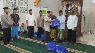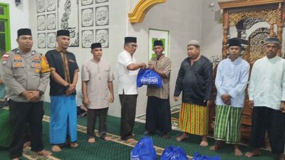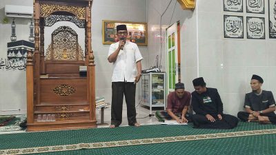 MATANUANSA — Sekretaris Camat Jemaja Timur, Muhammad Arias mewakili Camat Menyampaikan Kata Sambutan sebelum jamaah sholat tarawih yang akan kita laksanakan sekaligus, Menyerahkan Bantuan yang di salurkan Kabupaten Kepulauan Anambas paket sembako dari Medco E&P Natuna Ltd dan Bantuan Baznas Kepulauan Anambas kepada warga Desa Genting Pulur kecamatan Jemaja Timur Ramadan 1447 H.